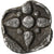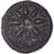 Stellate pattern with four rays with central dot and dots between the rays within a linear square, all within incuse square.